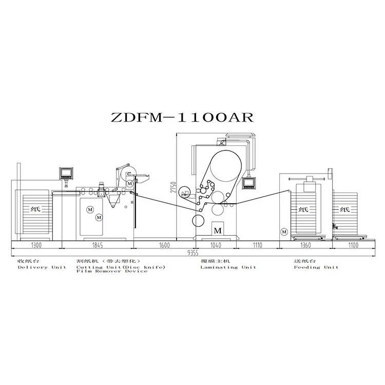 Planificarea spațiului: Lungimea totală a mașinii de laminare automată pentru îndepărtarea peliculei este de aproximativ 9,4 metri și trebuie rezervat spațiu suplimentar de depozitare și înlocuire pentru rolele de reciclare a foliei de eliberare. Se recomandă rezervarea a cel puțin 2 metri de canal de operare pe partea de înfășurare.