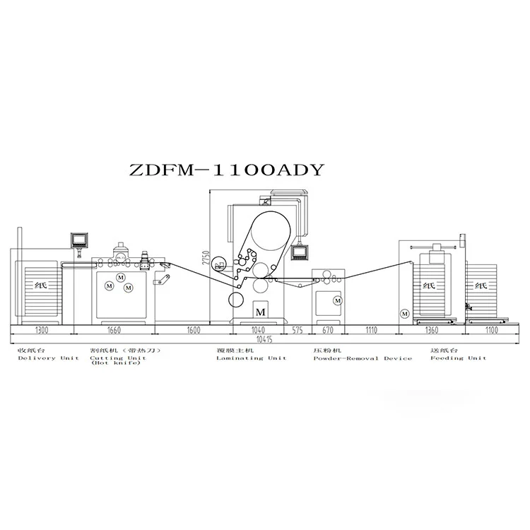 Curățare și laminare: Hârtia trece mai întâi printr-un dispozitiv de îndepărtare a pulberii electrostatice pentru a curăța suprafața, apoi este laminată cu precizie cu o peliculă acoperită cu lipici (sau film pre-acoperit) sub role încălzite.