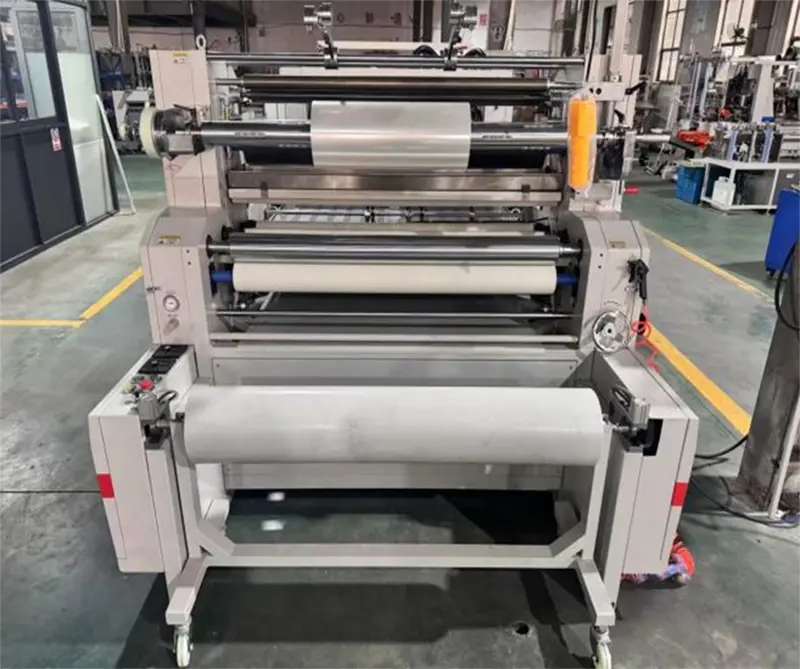 Dispozitivul de tăiat hârtie separat este echipat cu un controler de tensiune, plat și necreț după laminarea hârtiei subțiri.