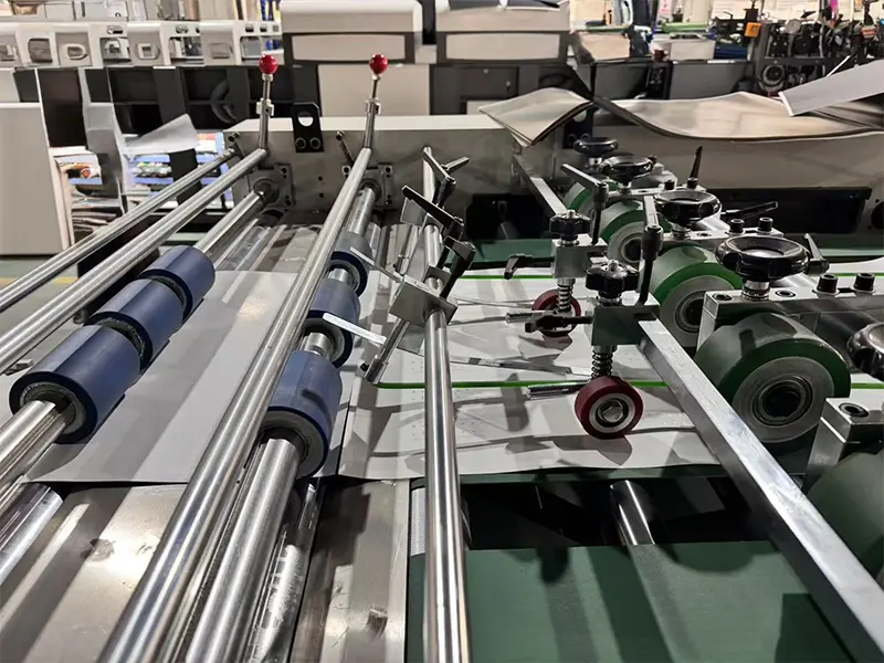 Dispozitivul de tăiat hârtie separat este echipat cu un controler de tensiune, plat și necreț după laminarea hârtiei subțiri.